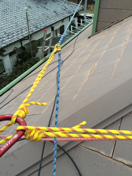 2016-01-13 Home › すべてを表示 › 日常 › ロープで確保 ロープで確保 以前、山登りをした時期があって安全のためにロープなど登山道具を持っています。写真のような急傾斜の屋根上では、これが結構役に立ちます。非常用の使用を想定した道具類なので結構役に立ち、無駄にならずに済みました。本来は足場が必要な現場ですが、それほど余計な費用は計上せずに施工できました。ただ、これは自己責任で行う登山とは違うので、一般的には問題ありの行為です。 共有:FacebookX 関連記事 今年の夏 スキー2日目 板金 異音 搬入 3日間のスキー 暖冬