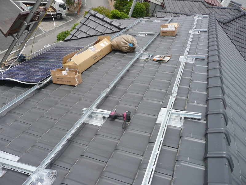 太陽光発電施工事例 ②-2 瓦屋根 (支持瓦の設置)