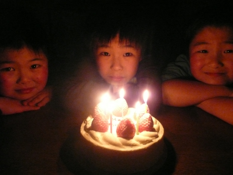 遅く帰宅したのですが、ケーキが届いた夕刻から、このときを待っていた子供たちが集まってきました。