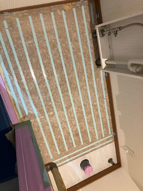 床は通常CFと呼ばれるクッションフロアで仕上げるのが一般的なのですが、奥様は掃除のしやすさ、清潔な状態の維持を重視していたのでタカラの内装材でホーロークリーントイレパネルをご紹介しました。